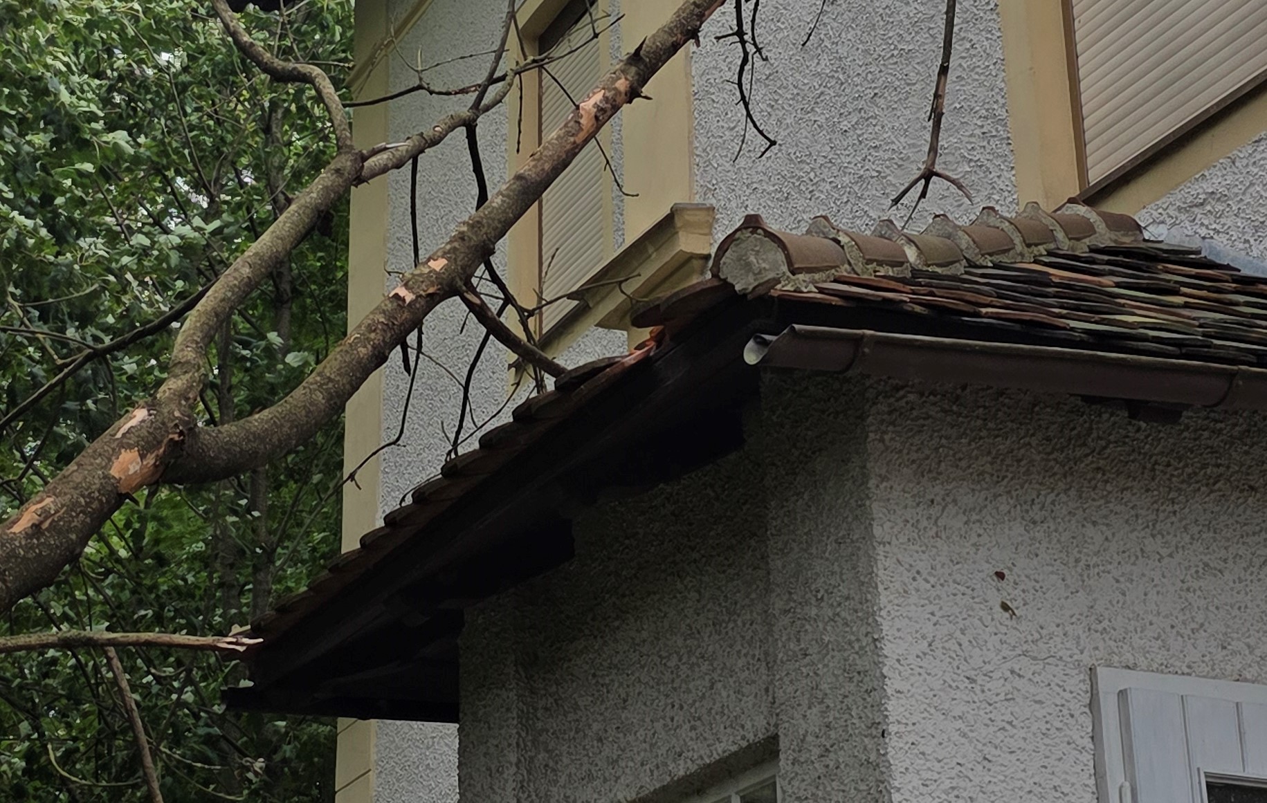 Einer der 21 geschädigten Bäume auf dem Grundstück wurde in den letzten Tagen durch einen Sturm auf das dort stehende Wohnhaus gedrückt.