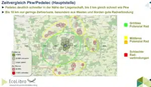Neben der Analyse des firmeneigenen Fuhrparks wurde besonderes Augenmerk auf die Mobilität der Mitarbeitenden gelegt. Die individuell erarbeiteten Maßnahmen zielen darauf ab, unnötige Verkehrswege zu reduzieren sowie Radverkehr, ÖPNV, Mitfahrgelegenheiten und die Elektromobilität zu fördern.