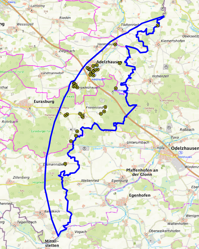 (GeflPestSchV) und dem Tiergesundheitsgesetz (TierGesG) - Karte betroffener Orte und Ortsteile im Landkreis Aichach-Friedberg